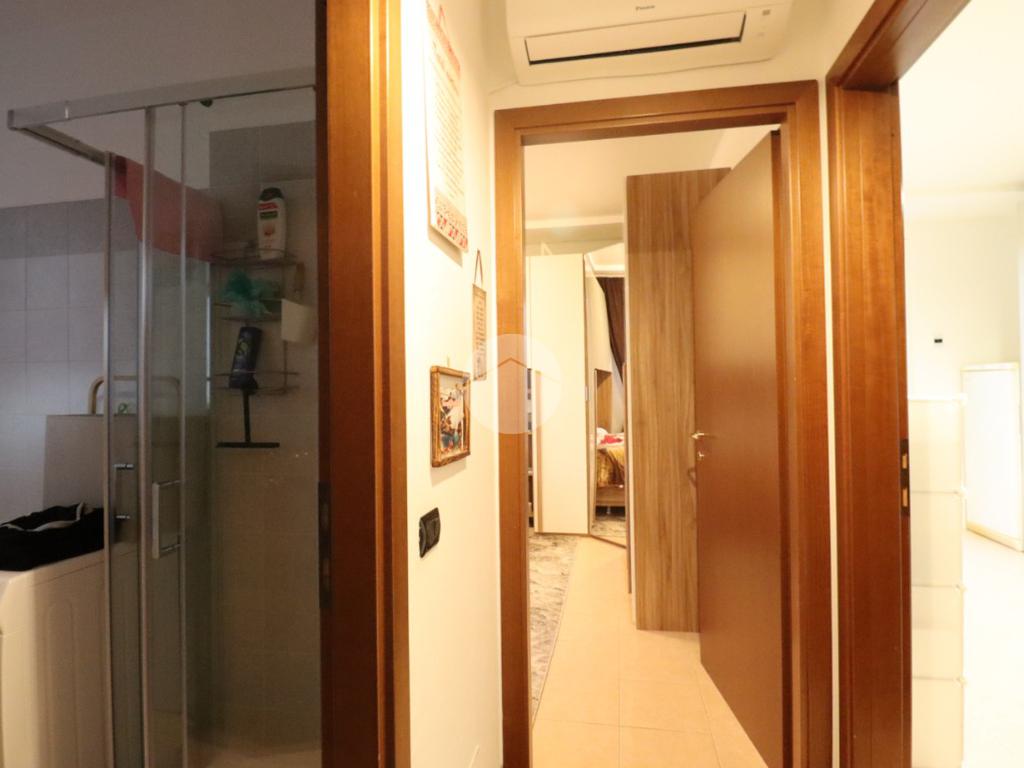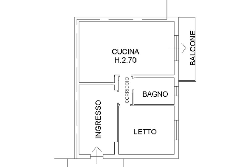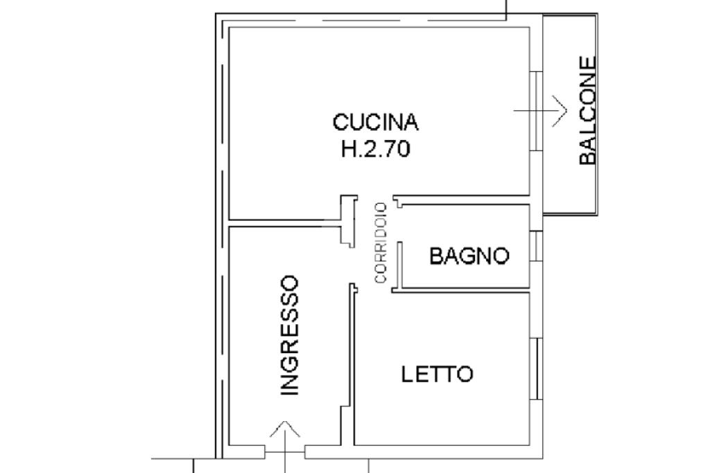 L’abitazione è composta da ampio ingresso che accede direttamente al corridoio, da questo si raggiungono la camera matrimoniale, il bagno con doccia e la zona giorno in open space con angolo cottura e poggiolo.