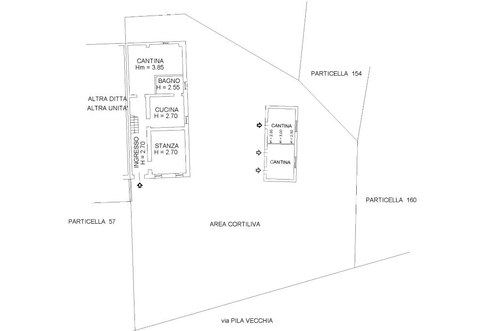 L'immobile presenta un ampio giardino su tre lati, con annesso rustico di 32 mq, l'abitazione, invece, è composta da ingresso, una prima stanza, cucina, bagno e cantina al piano terra; due camere da letto ed ampio ripostiglio al primo piano.