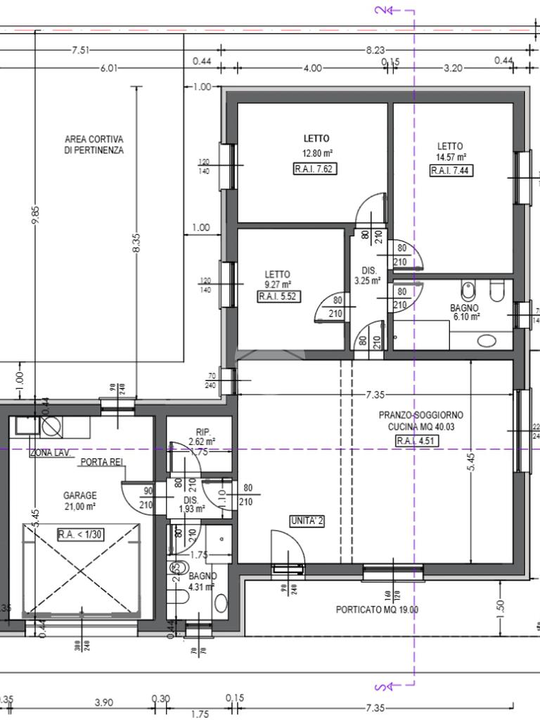 E' composta da soggiorno con cucina con travi in legno sbaincate a vista, tre camere da letto, tra cui una matrimoniale, una 3/4 ed una singola, 2 bagni con doccia, ripostiglio e garage con zona lavanderia comunicante con l'abitazione.