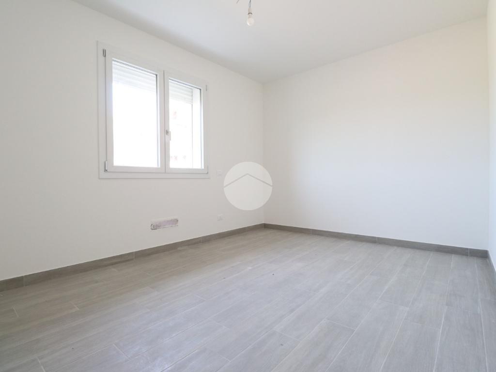E' composto da soggiorno con cucina con travi a vista in legno bianco, tre camere da letto, tra cui una matrimoniale, una 3/4 ed una singola, 2 bagni con doccia, ripostiglio, zona di lavanderia, garage singolo e porticato esterno coperto.