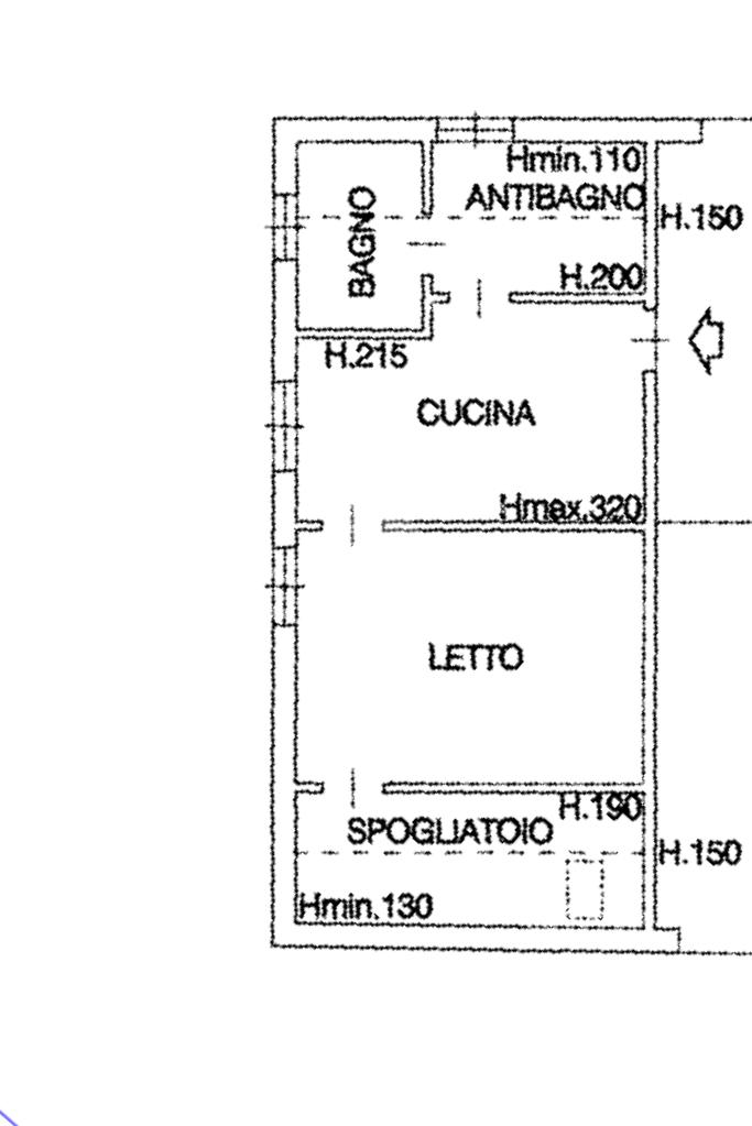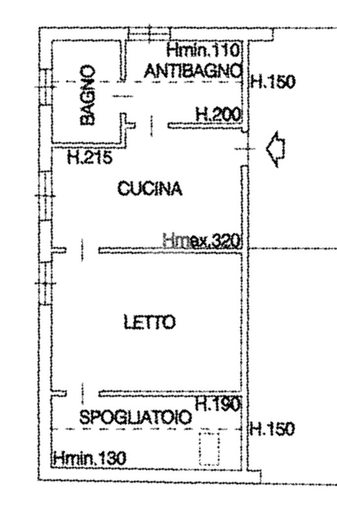 L'immobile è composto da soggiorno con angolo cottura, cucinotto e bagno separati, camera da letto matrimoniale e ripostigio