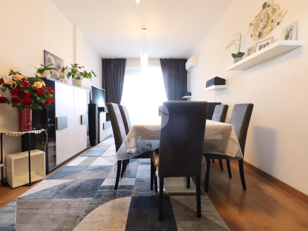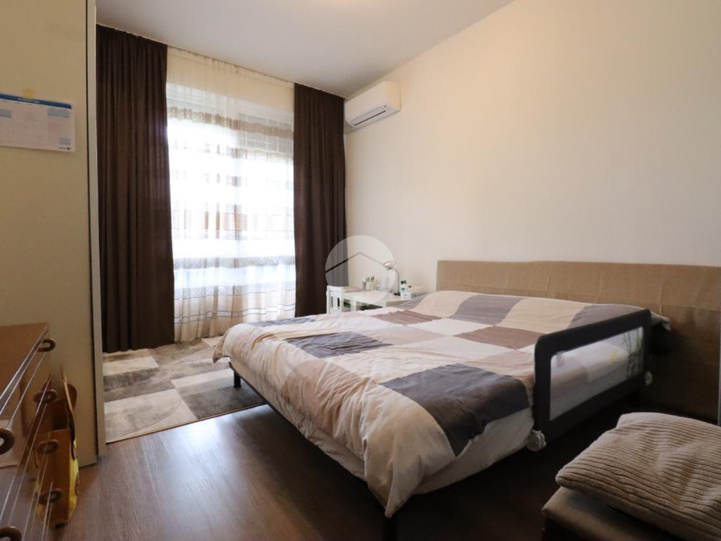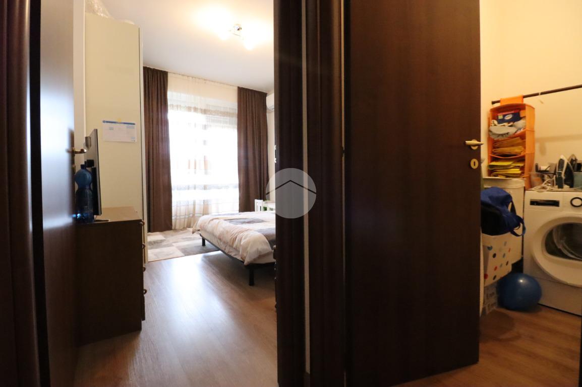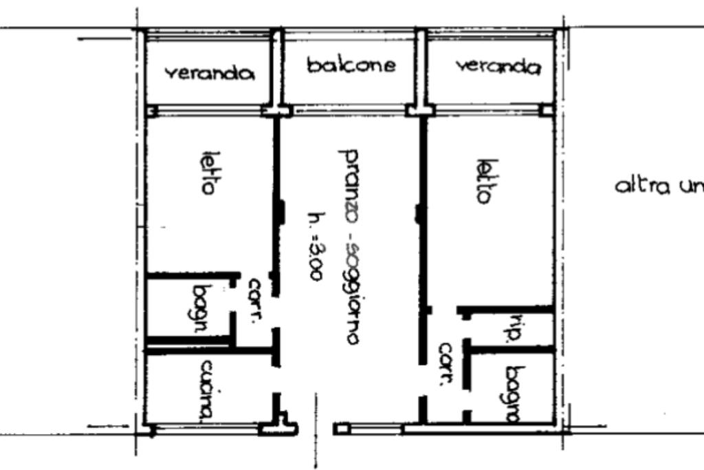 All'immobile si accede da un terrazzo in comunione con altri tre appartamenti ed è composto da ingresso, direttamente nell'ampio soggiono, con affaccio sul primo balcone. Sempre tramite la zona giorno abbiamo accesso alla comoda cucina ben illuminata.