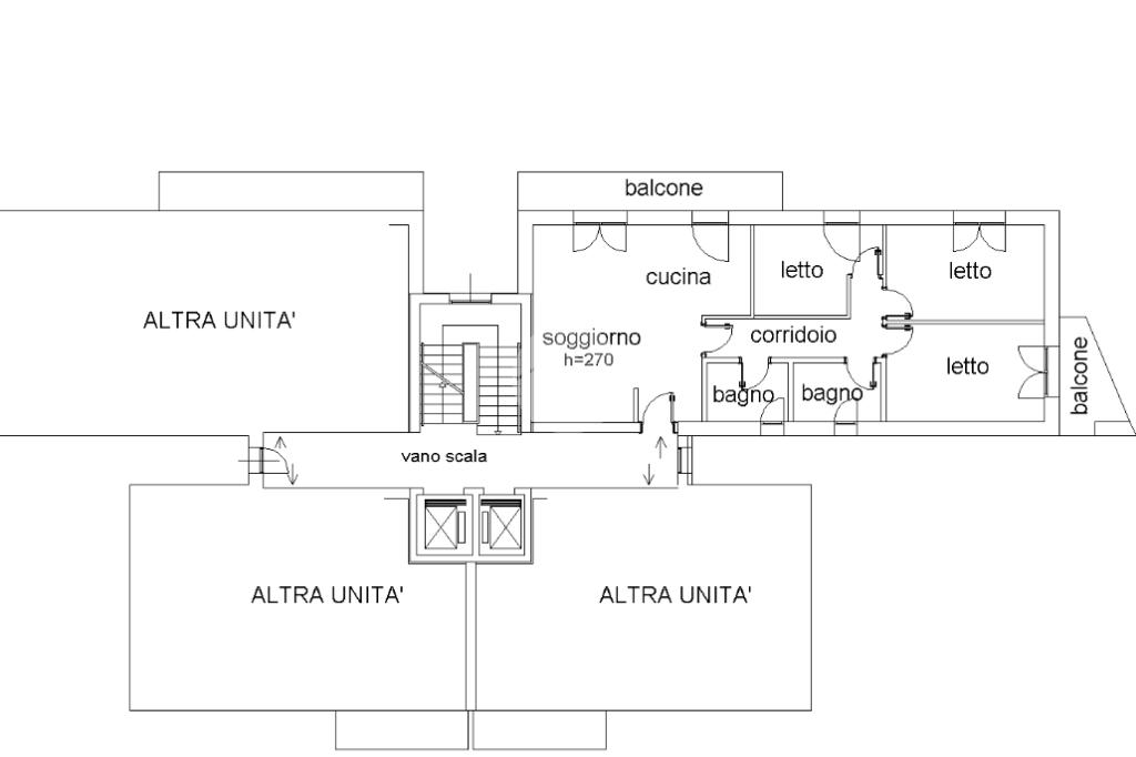L'immobile è composto da soggiorno con angolo cottura, servito di balcone, corridoio che porta alla zona notte dove sono presenti 3 CAMERE DA LETTO: due camere matrimoniali, di cui una con balcone e una camera 3/4. DOPPI SERVIZI: bagno/lavanderia con doccia e un altro bagno con vasca.