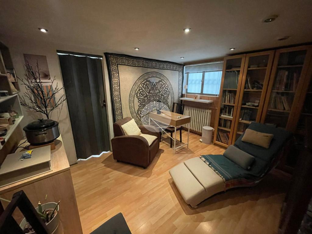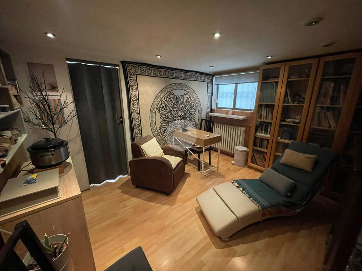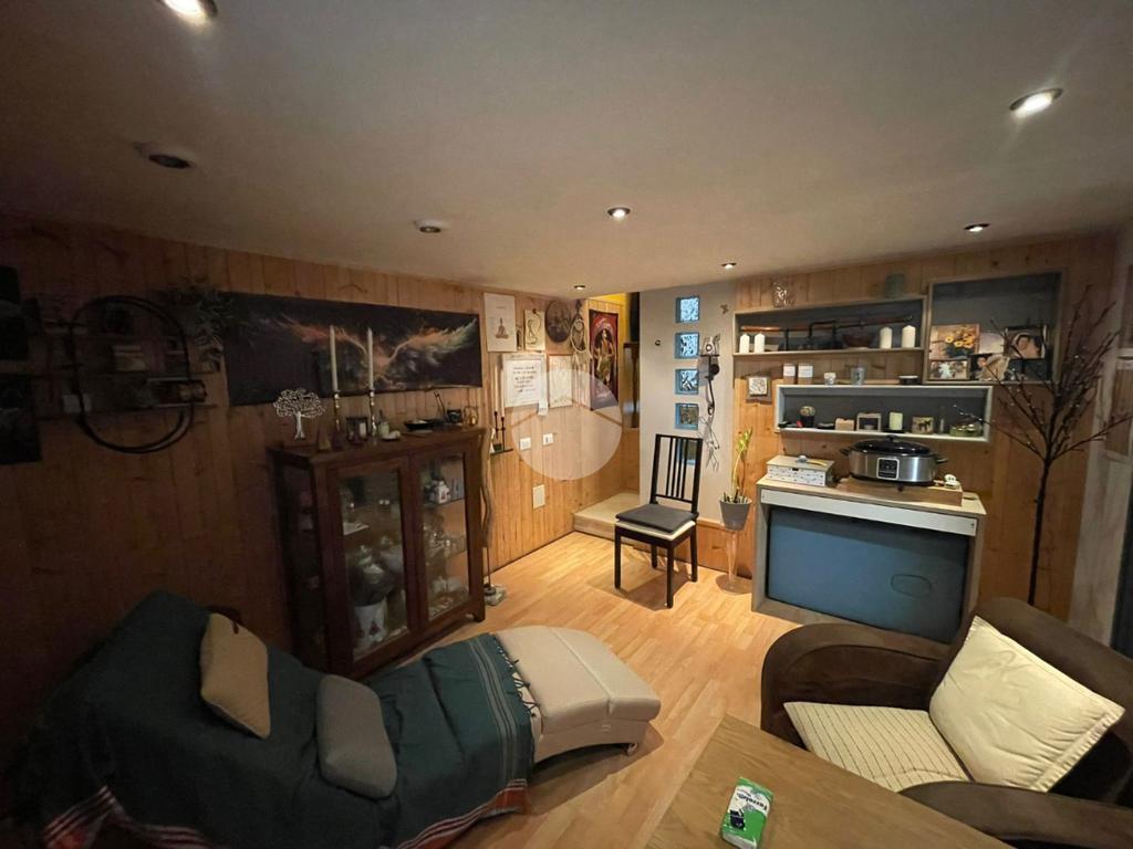 Al piano seminterrato completa l'immobile la taverna (attualmente adibita ad uso studio), garage singolo, lavanderia e secondo bagno con doccia.